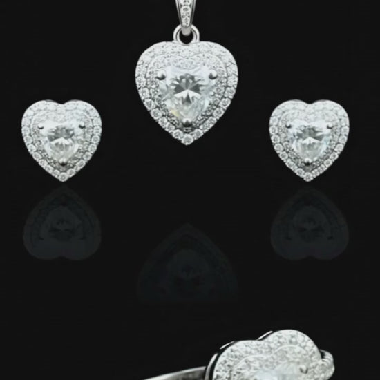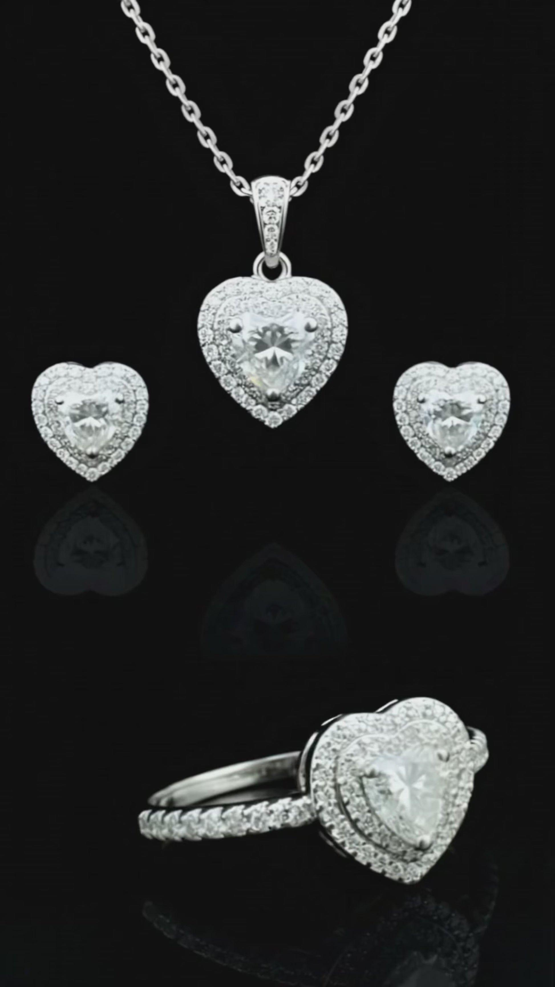 This exquisite 4-piece set features heart-shaped halo-style moissanite stones boasting VVS clarity and D color grade, delivering unparalleled brilliance and fire. Crafted with authentic 925 sterling silver, the set totals 4.00 carats of premium moissanite that passes stringent diamond testing—ensuring superior quality and visual appeal. Ideal for those seeking the elegance and radiance of a diamond alternative with expert craftsmanship and lasting durability.