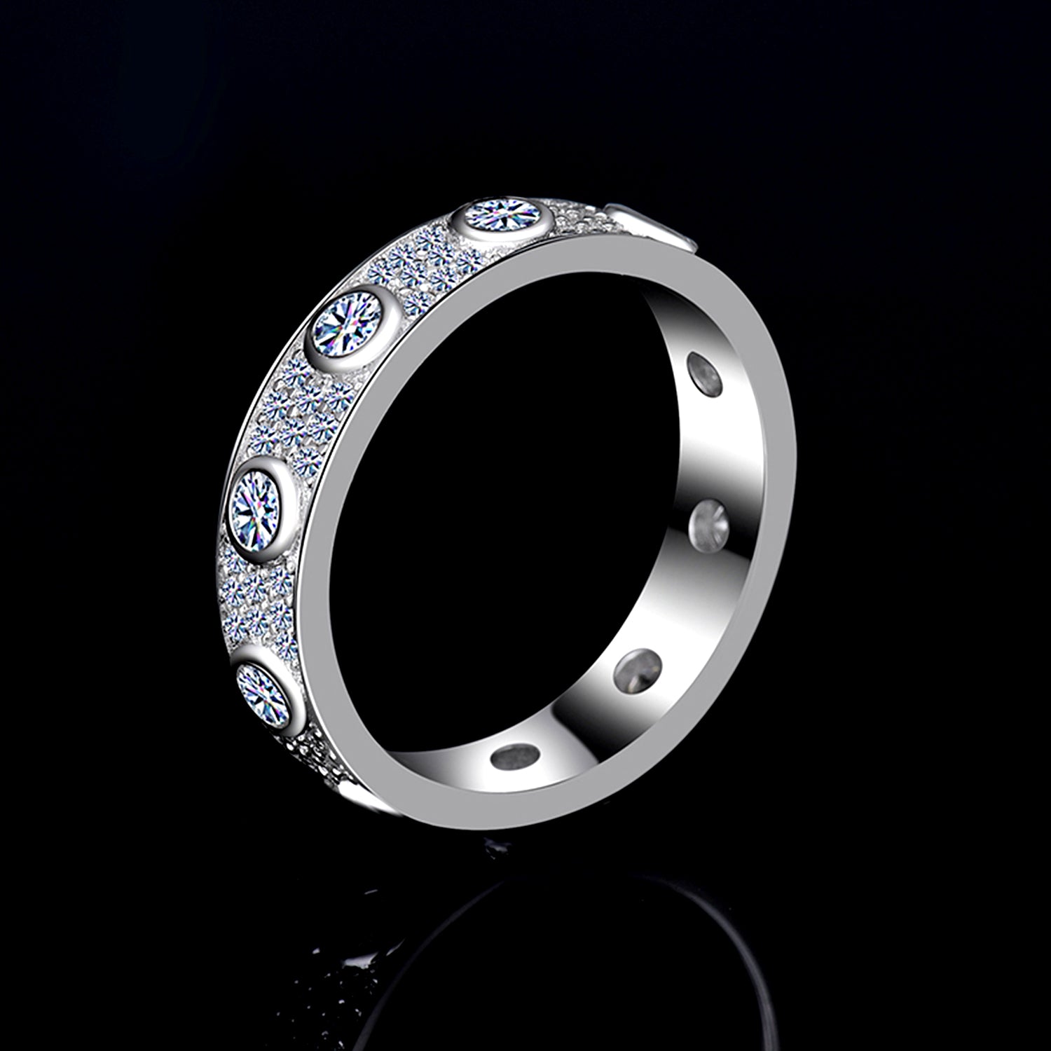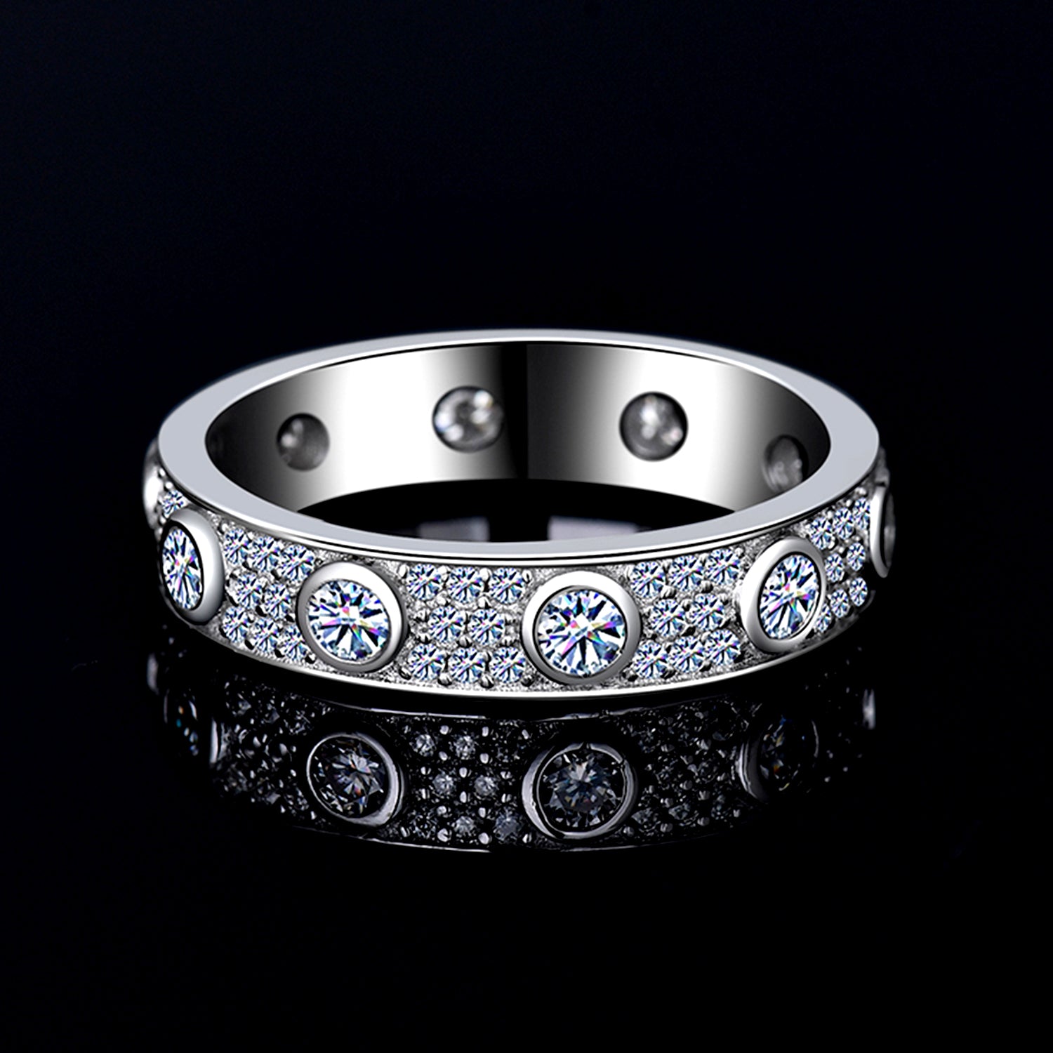 Whether worn as a wedding band, fashion ring, or daily statement piece, this unisex design embodies versatility and prestige. With its diamond-tester-approved moissanite stones, you’ll enjoy the luxury look and feel of natural diamonds without compromise.