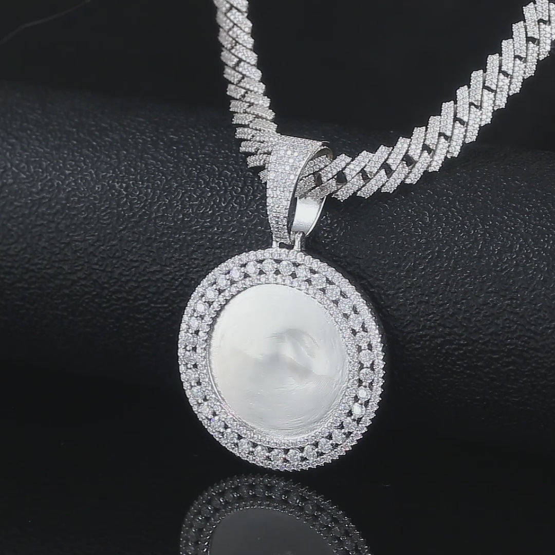 Design: Custom Picture Pendant with 3 Row Moissanite Border