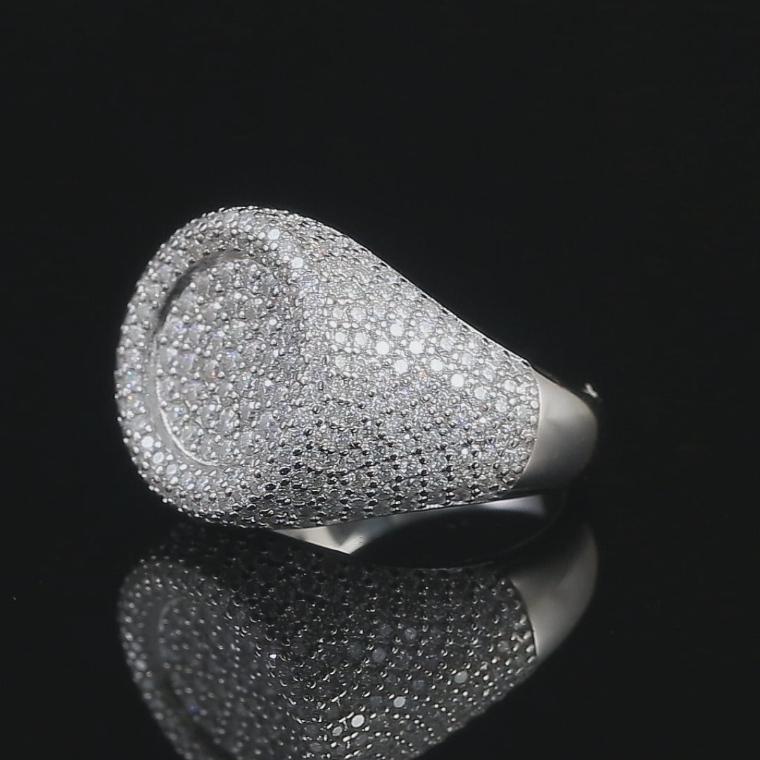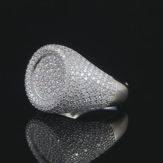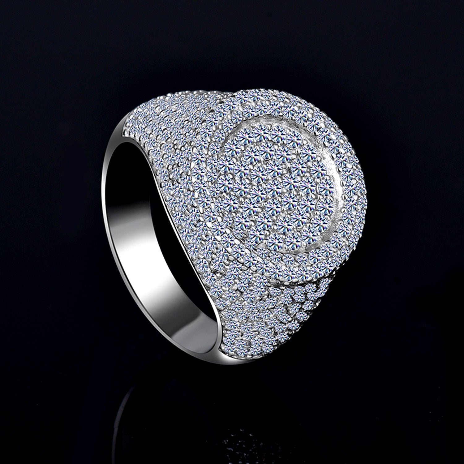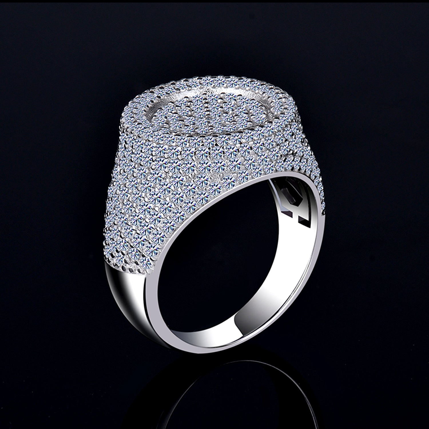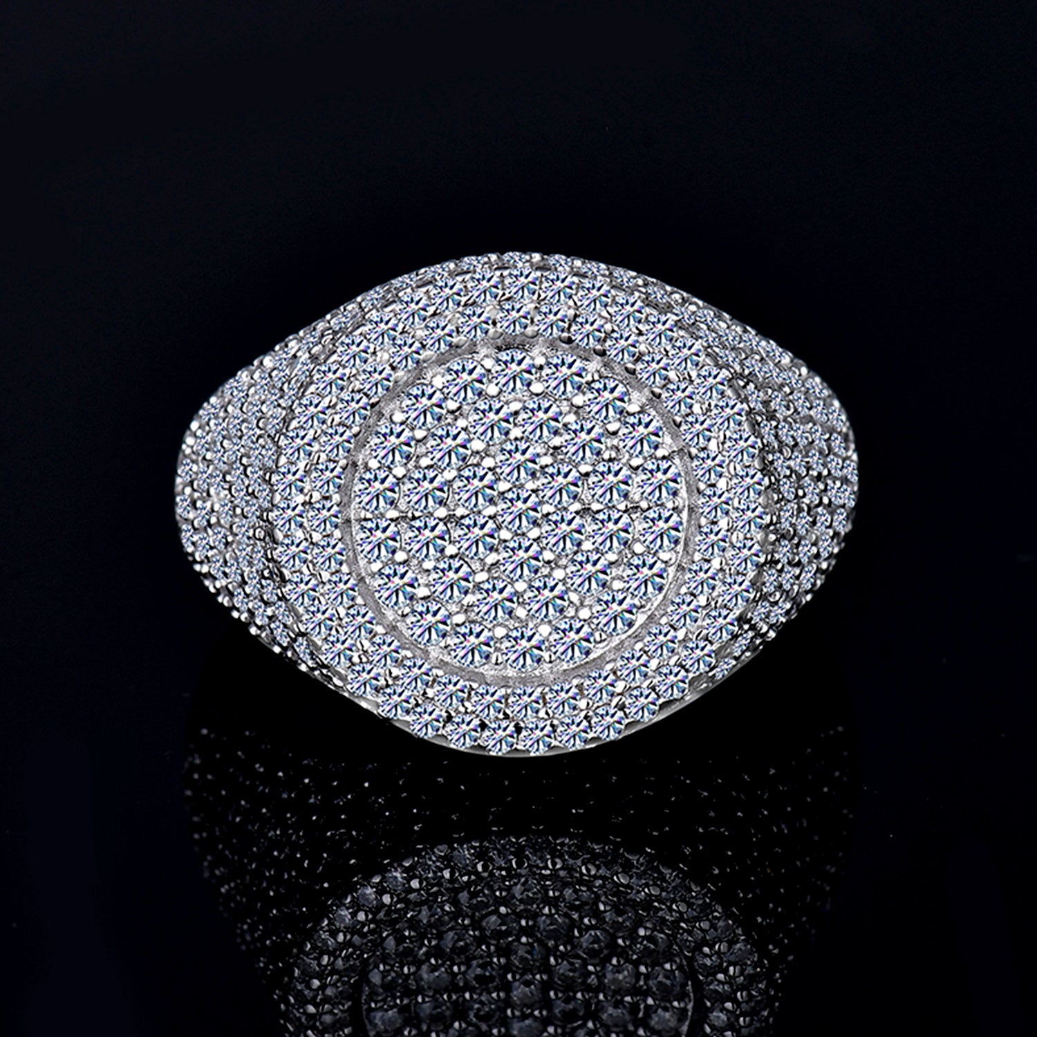Handcrafted from solid 925 sterling silver with a substantial weight of 11.00g, this masterpiece features a fully encrusted face of premium VVSD moissanite stones totaling 4.4 carats. Each stone is meticulously set to create a seamless pavé circle pattern, delivering fire and sparkle that rivals natural diamonds — and yes, it PASSES the diamond tester.