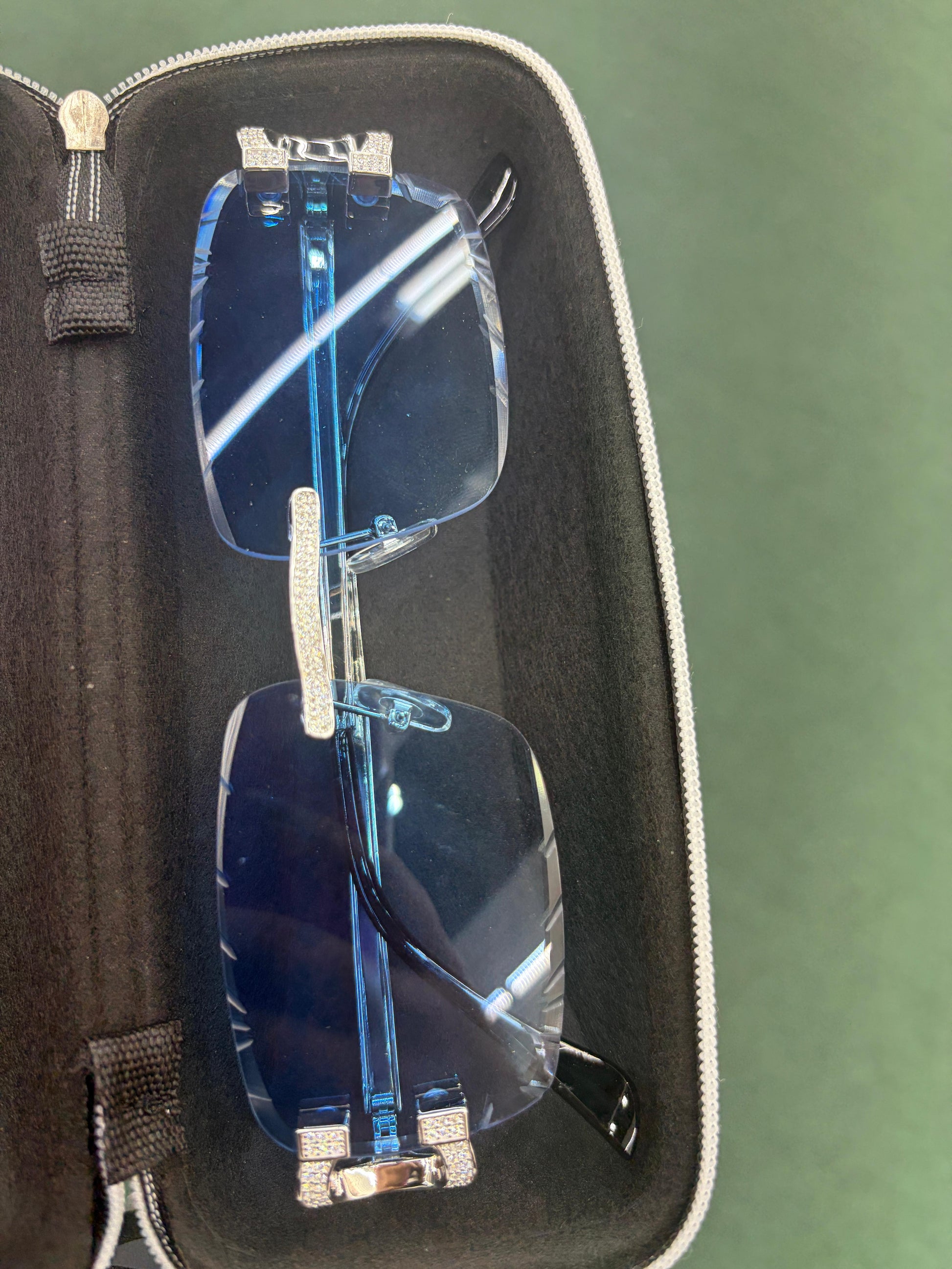 These Moissanite Blue Rimless Sunglasses deliver a bold luxury look with clean modern style. Designed for men who want standout eyewear, this piece blends high-end fashion with brilliant shine.