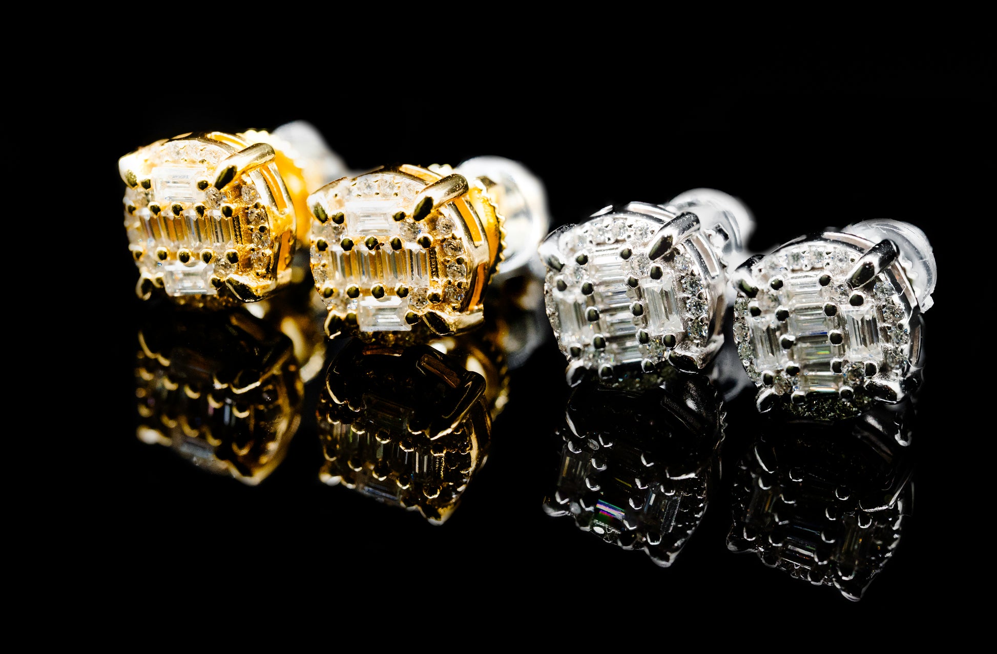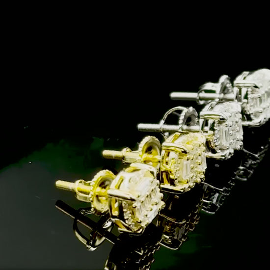 The 8.5MM halo design features baguette and round-cut moissanites arranged in perfect symmetry, creating an eye-catching reflection of light from every angle.