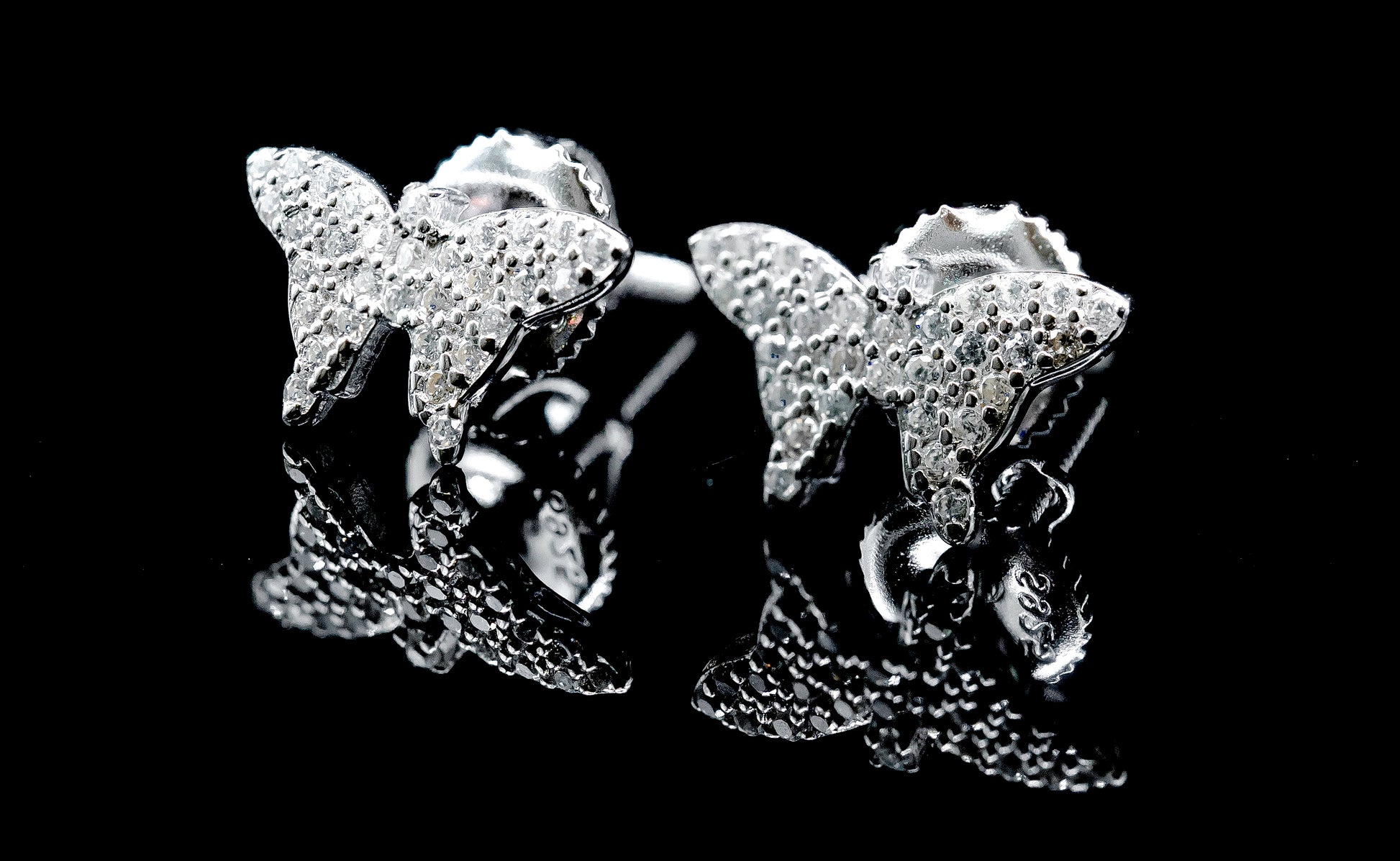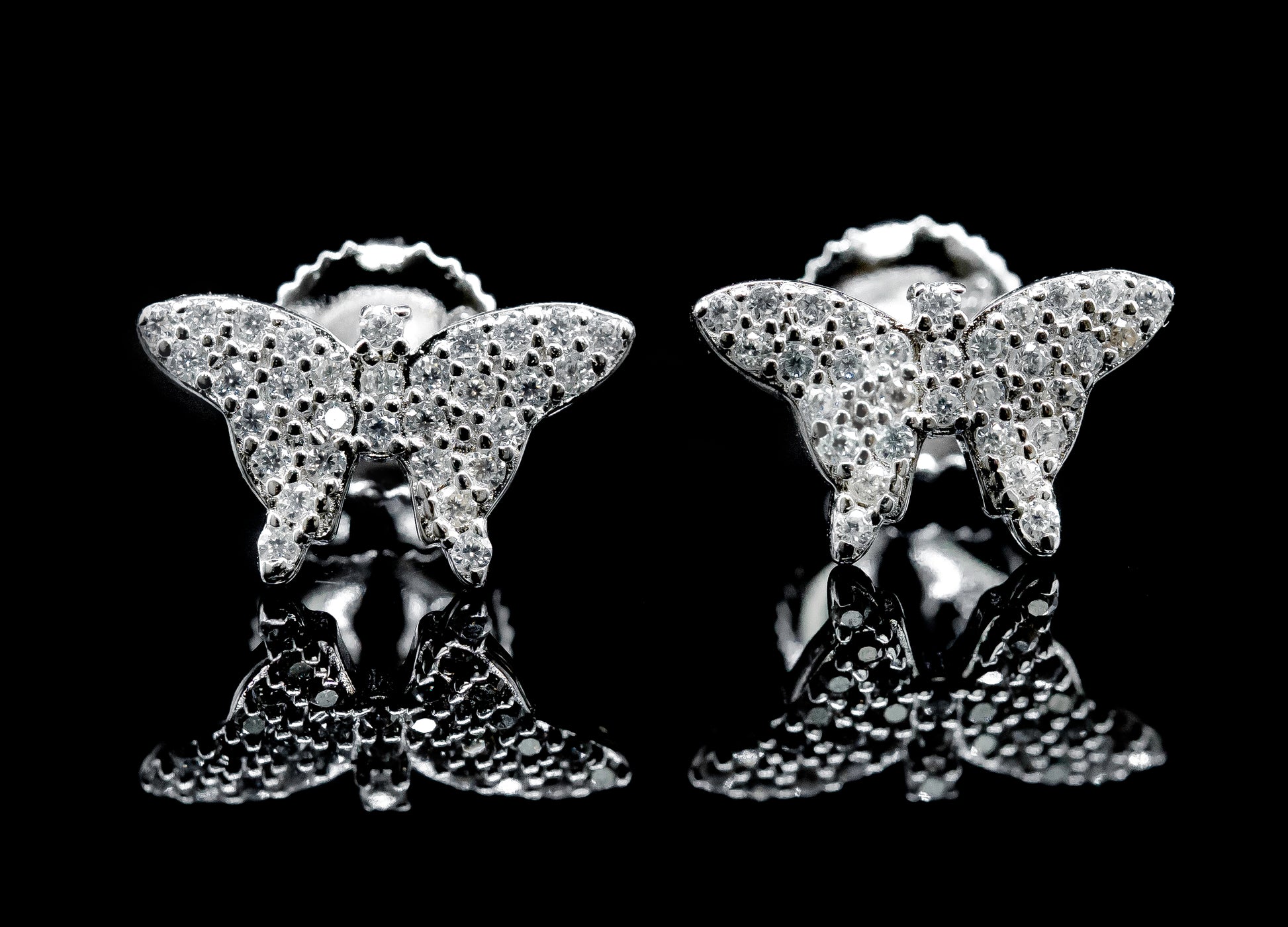 The intricate butterfly design symbolizes freedom and grace, while the expertly polished finish reflects the level of craftsmanship seen in top moissanite jewelry houses.