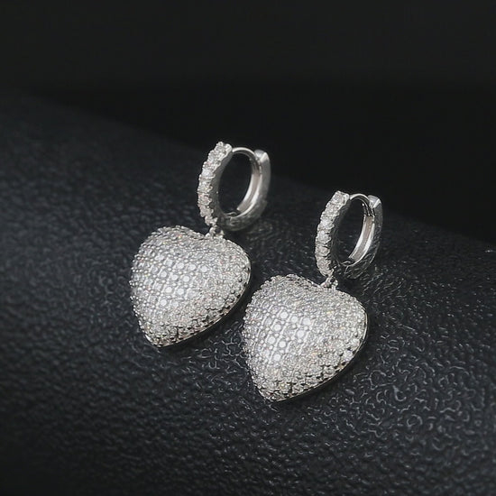 The heart silhouette glimmers with over 1.5 carats of precision-cut moissanite stones, creating a captivating dance of light with every movement. Weighing 3g of pure silver, these earrings strike the perfect balance between comfort and high-end allure.