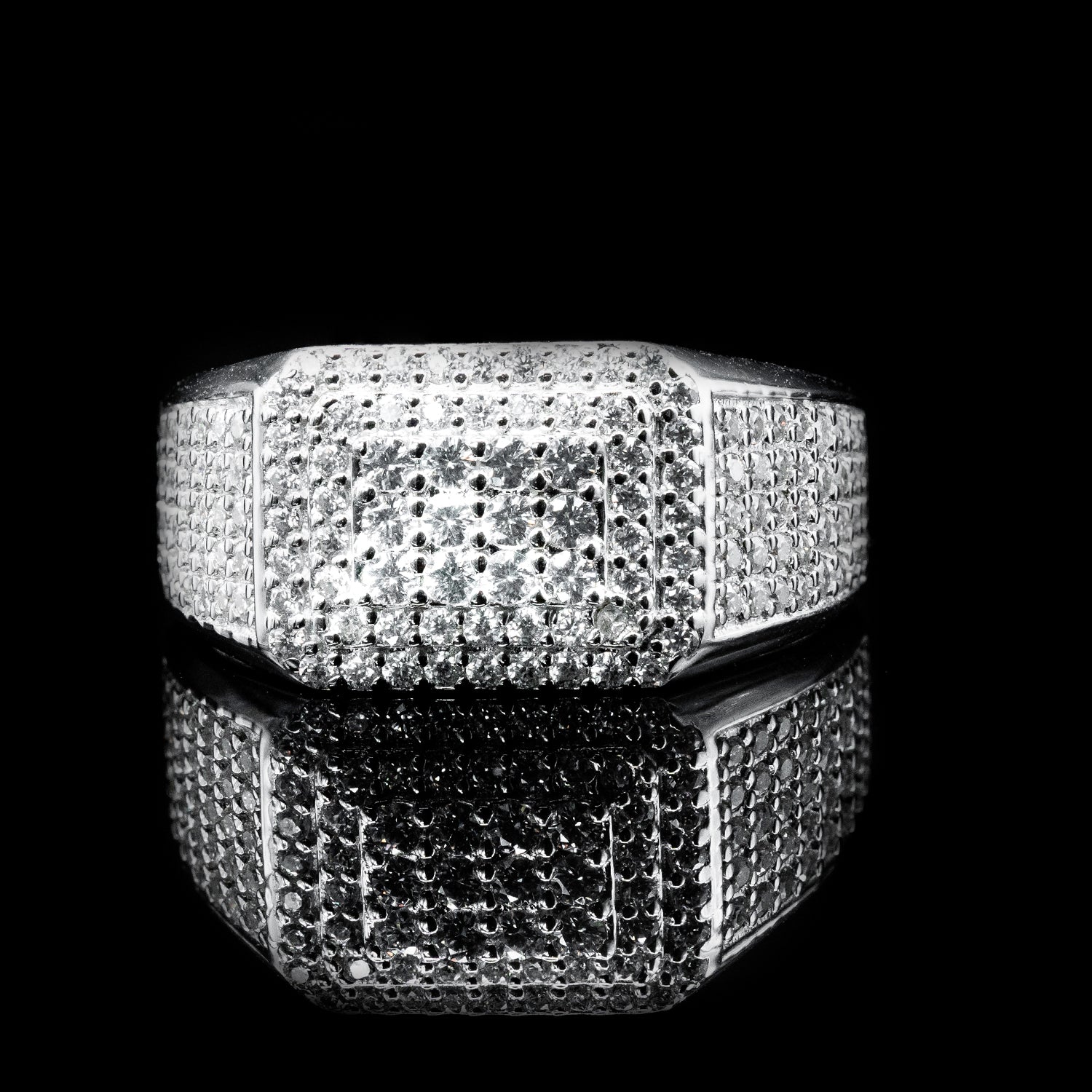 Unlike ordinary rings, this moissanite pave band is guaranteed to pass a diamond tester, giving you the prestige look and confidence of fine diamonds without the steep price tag. Whether you’re styling it with casual fits or elevating your formal attire, this ring makes an undeniable statement.