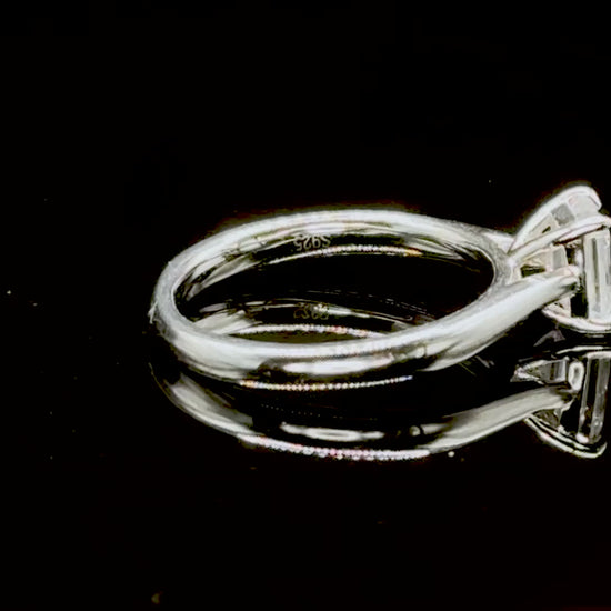 Crafted in 925 sterling silver (3.00 Gram), this masterpiece features a 1.00-carat emerald-cut moissanite, known for its clean lines and mirror-like facets. The four-prong solitaire setting enhances the brilliance of the stone while keeping the focus on its bold, geometric silhouette. Whether chosen as an engagement ring, promise ring, or a symbol of personal achievement, this design embodies grace and prestige.