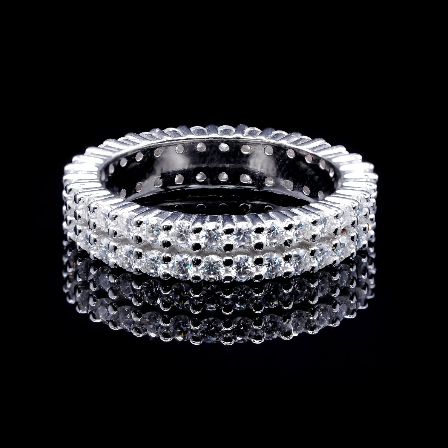 Design: Full band with radiant moissanite stones for all-around brilliance