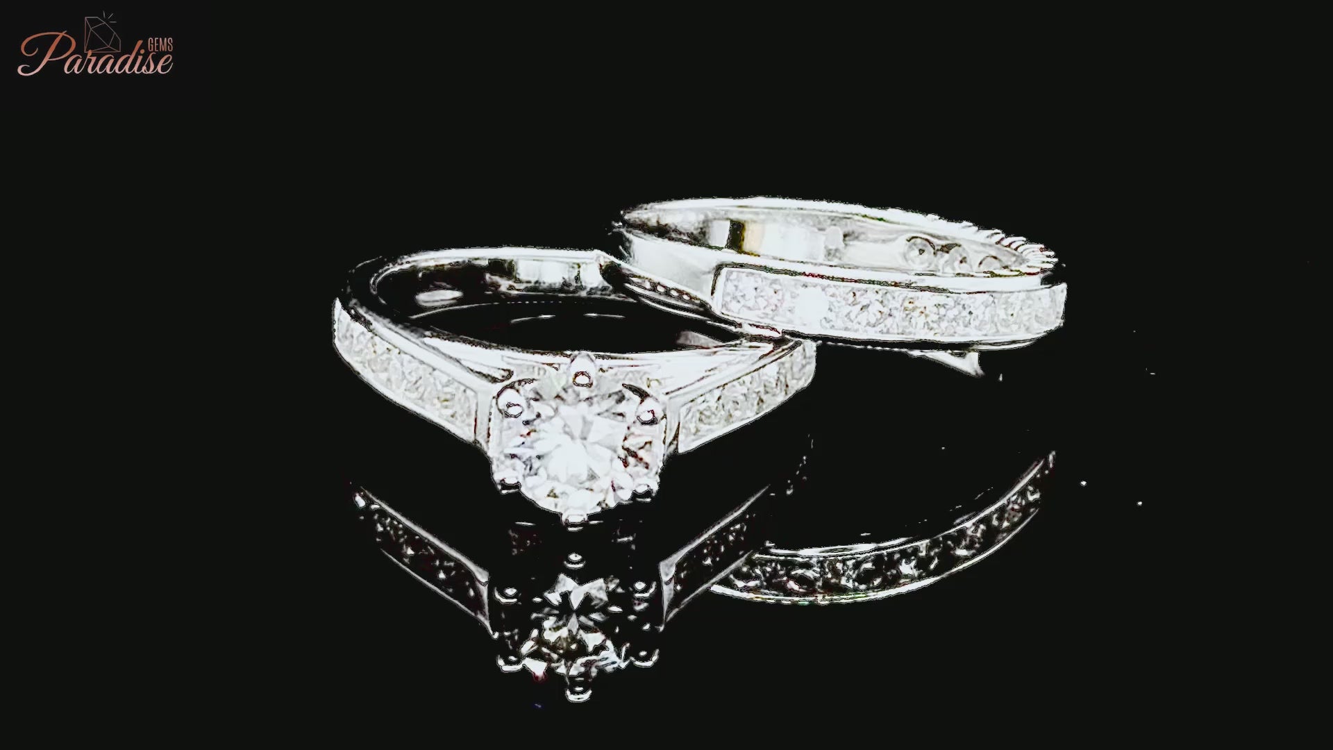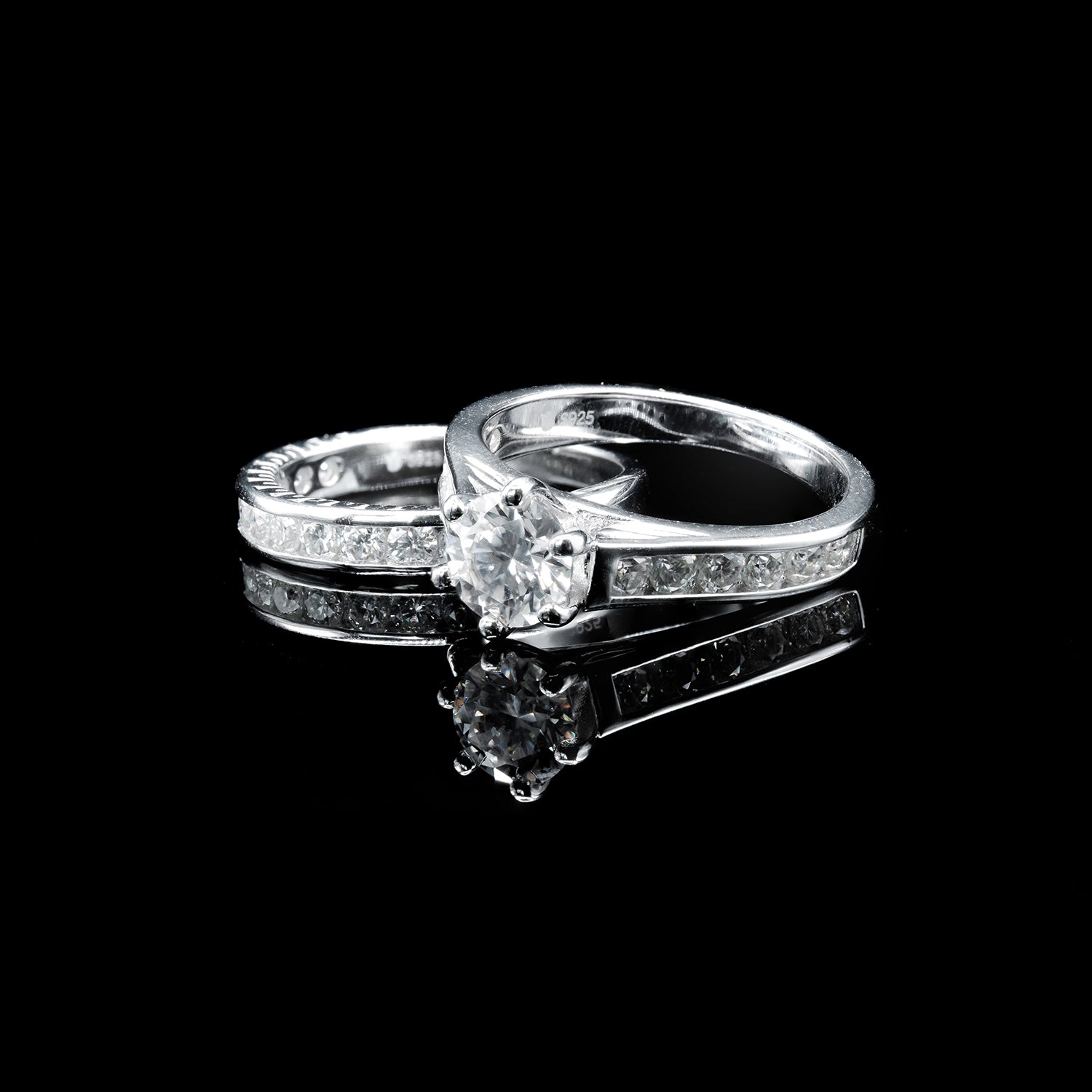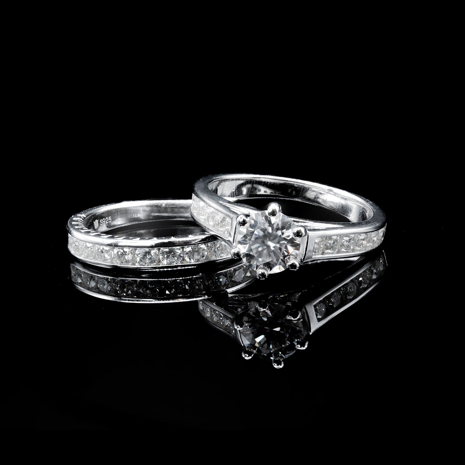 Design: Classic solitaire with channel-set band + matching wedding ring